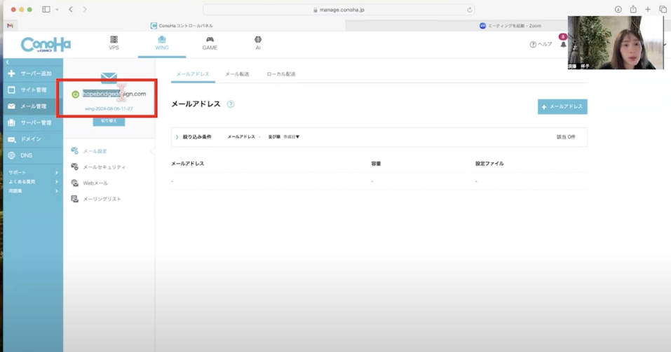 独自メールアドレスの設定